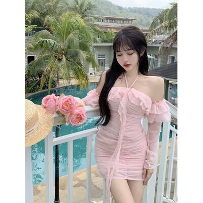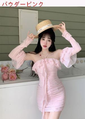 ホルターネック シフォン ワンピース 夏 セクシー フリル タイト ミニ 夏 ワンピース ドレス
