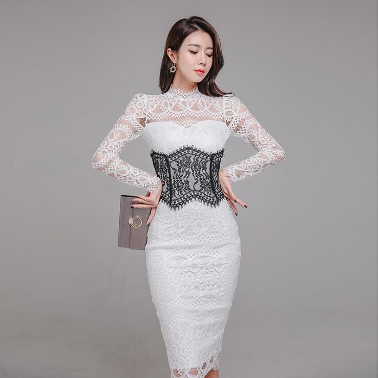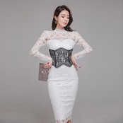 総レース ワンピース 膝丈ドレス セクシー タイト きれいめ ひざ丈
